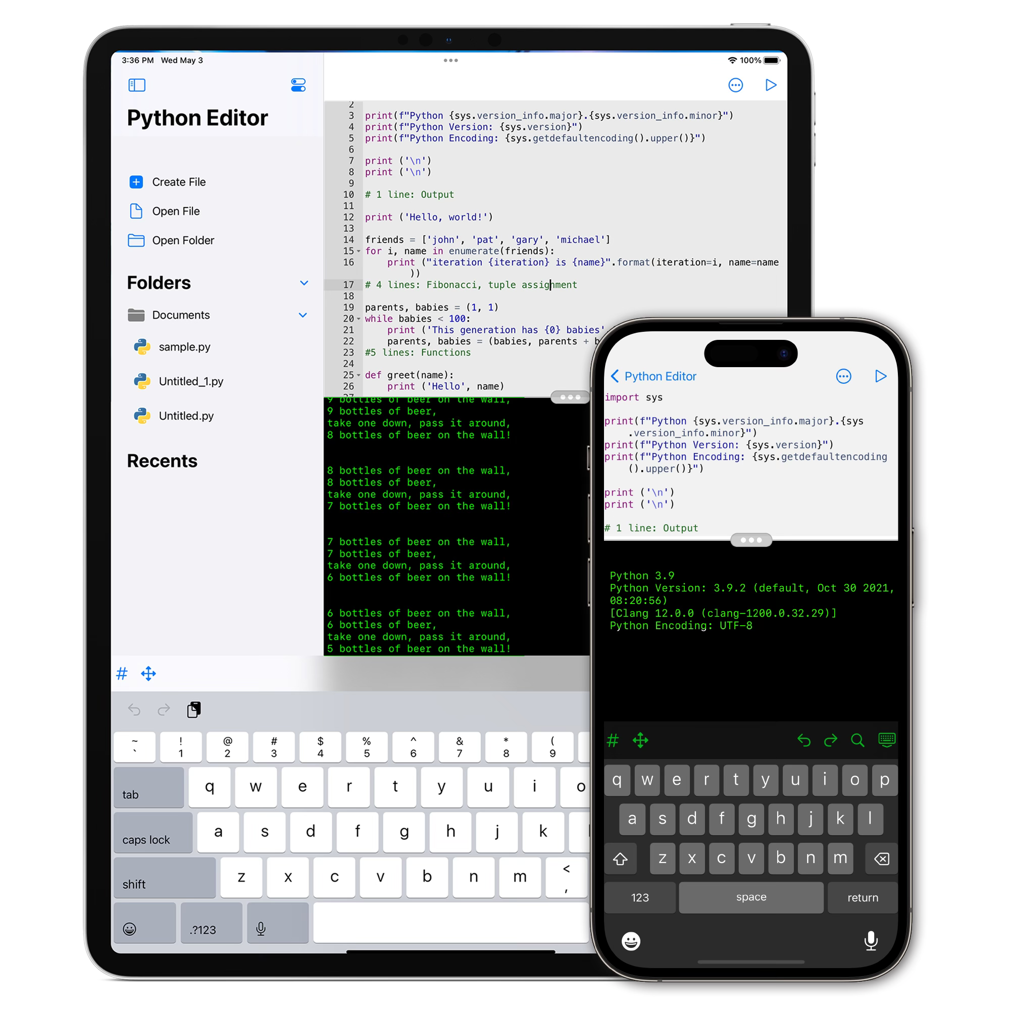 Step into the world of Python programming directly from your iOS device with Python Editor. Whether you're an experienced developer or embarking on your first coding adventure, our intuitive and rich-featured editor simplifies the process of writing, debugging, and executing Python code wherever you are. ..